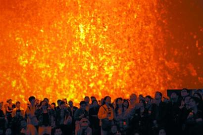 據(jù)冰島政府總代表仁寶松介紹,冰島館內短片中火山噴發(fā)的震撼場景是4月新采集加入的。