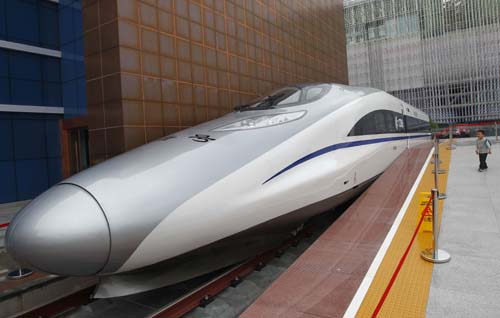 時速可達380公里的高速動車"停靠"鐵路館 組圖