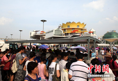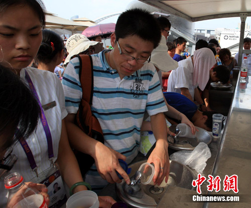 高溫世博園內直飲水吃香。潘索菲 攝