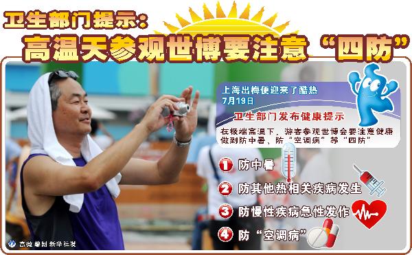 圖表:衛(wèi)生部門提示:高溫天參觀世博要注意“四防” 新華社發(fā)