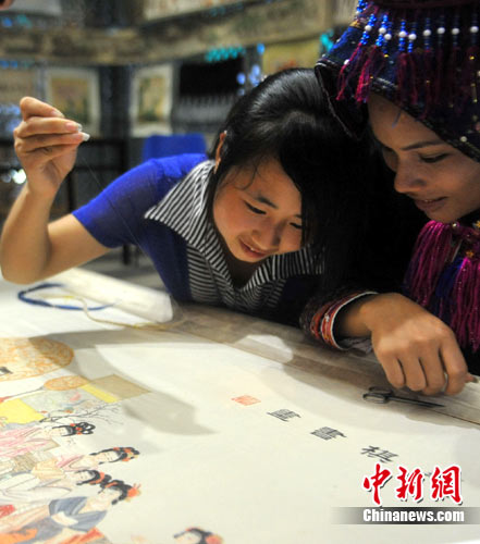 8月10日,上海世博會海南活動周繼續(xù)舉行。在寶鋼大舞臺“非遺”傳習(xí)區(qū),海南苗妹以少女秀發(fā)作線,繡出傳神畫作。據(jù)介紹,古時海南苗族人為了躲避戰(zhàn)亂,不斷往山里遷徙。由于在山里無法獲得絲線,愛好紡織的苗族婦女便發(fā)明了發(fā)繡。發(fā)繡藝術(shù)歷史悠久,有“無字史書”的美稱,具有極高的文化內(nèi)涵和欣賞價值。