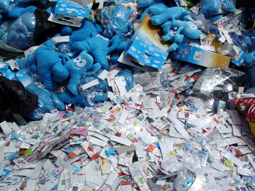 園區警方提醒廣大游客,由于假冒海寶塞入了黑心棉等填充物,親密接觸會危害健康,因此購買世博特許商品一定要到世博會指定商店購買,不要為貪圖小利而購買小販手中的物品,以免危害身體健康。(解放網)