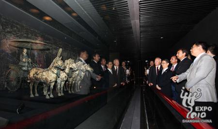 西班牙首相何塞·路易斯·羅德里格斯·薩帕特羅一行在中國(guó)館觀賞國(guó)寶“銅馬車(chē)”