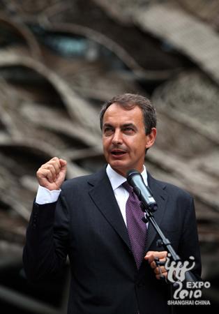 西班牙首相何塞·路易斯·羅德里格斯·薩帕特羅在西班牙館即興發(fā)表演講