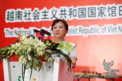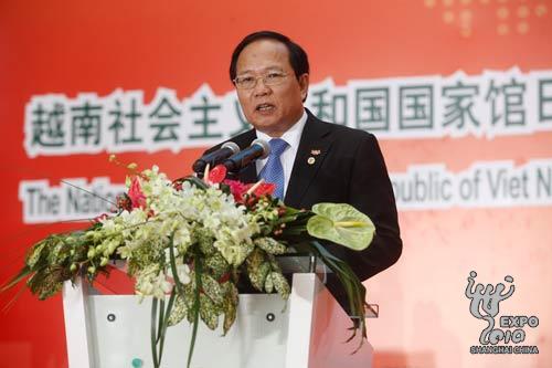 黃俊英在致辭中表示,今年恰逢越南建國65周年、越中建交60周年和越中友好年,由此使越南國家館日更具特別意義。他表示,越南積極支持中國舉辦2010年上海世博會,上海世博會是越南向世界人民介紹越南國家、人民、特色文化,以及越南革新開放20多年來巨大成就的寶貴機會。2010年是越南首都河內紀念建城1000年,越南國家館以“升龍——河內1000年”為主題進行展示,吸引了眾多觀眾,為上海世博會的成功作出了積極貢獻,越南也將此視為與世界相互學習交流并汲取發展精華的機遇。
