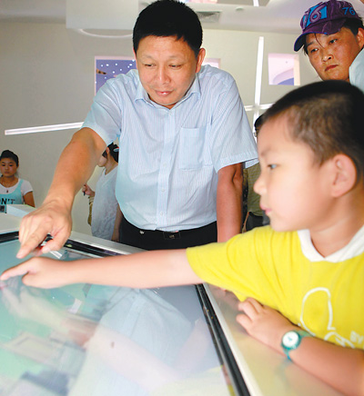 9月15日,雷達(dá)與公共安全技術(shù)專家、中國工程院院士吳曼青在太空家園館為游客講解世博“天眼”浮空器。(屠知力 攝)