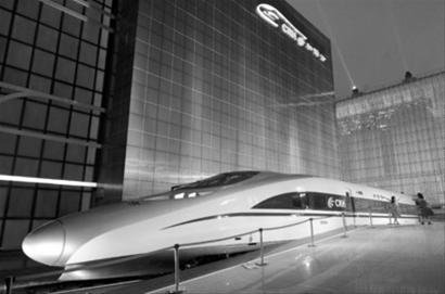 □中國鐵路館門口,“和諧號”CRH380A時速最快可超400公里。新華社圖片
