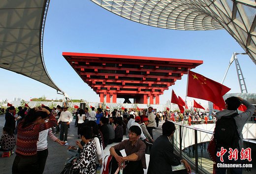 10月4日,上海風和日麗,世博會入園人數持續上升。黃金周前三天,上海累計接待觀光游客407萬人次,幾乎相當于往年整個黃金周的接待量。目前,上海世博園區連續三天已接待游客超過100萬人。中新社記者 任晨鳴 攝