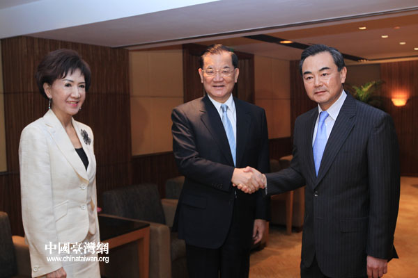 中共中央臺辦、國務院臺辦主任王毅29日在上海會見了前來出席上海世博會開幕式的中國國民黨榮譽主席連戰一行。