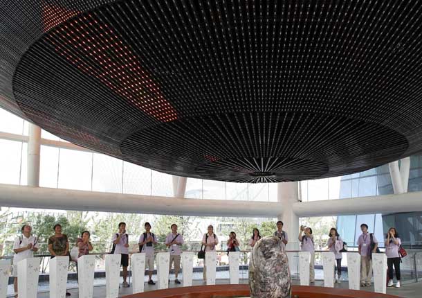7月21日,滬臺師生們在臺灣館內共同“點燈祈!。新華社記者 劉穎 攝