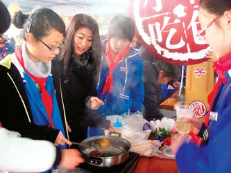 記者昨天在黃渡中學藝術(shù)節(jié)上看到,學生們自己采寫編印的世博小報,內(nèi)容豐富、版面生動活潑。最搶人眼球的是“世博菜”烹飪大賽。只見學生和家長們組成幾十對“大菜師傅”圍著長桌一字擺開,他們拿著自己帶來的菜,有的煎炒、有的蒸煮、有的做成湯料,各自使出了全部看家本領(lǐng)。一位陸姓同學的爸爸說:“世博會離我們越來越近了,我們?nèi)胰艘惨倬毑倬殻瑢脮r外國朋友到上海來,我們要燒出好吃的嘉定地方菜讓他們嘗嘗……”