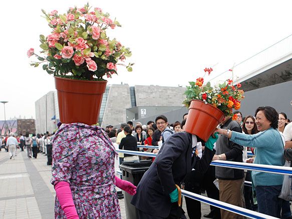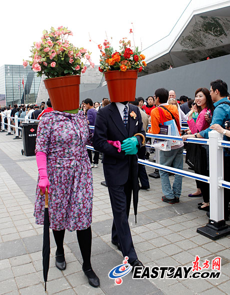 世博園里“奇人”上演行為藝術