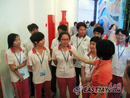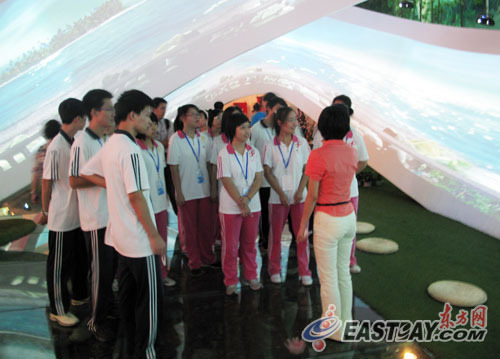 東方網(wǎng)記者喬禮9月10日?qǐng)?bào)道:“同學(xué)們,誰(shuí)能告訴老師,這里的石塊哪一部分是生物化石,哪一部分又是礦物石呢?”這并不是一堂普通的地理課,而是來(lái)自上海市回民中學(xué)的15位高二學(xué)生今天上午在中國(guó)館(網(wǎng)上中國(guó)館)省區(qū)市館內(nèi)的湖南館(網(wǎng)上湖南館),上的一堂生動(dòng)的“世博一課”。美術(shù)肖老師將生物、物理、歷史等學(xué)科知識(shí)都貫穿于其中,為同學(xué)們帶來(lái)了一堂名副其實(shí)的“綜合課”。
