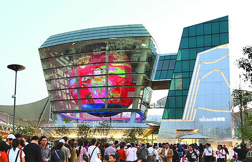 世博會臺灣館天燈造型引人矚目,臺北縣政府曾經積極爭取拆解重建。(資料圖)