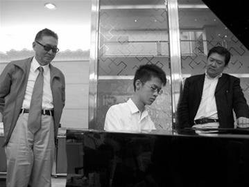 這邊波波跟偶像交流正歡,那邊李戡也跟自己的偶像、著名指揮家余隆聊得起勁,并大膽“班門弄斧”秀了一把鋼琴技藝,彈奏一曲 《黃河》選段,并接受了大師的現(xiàn)場指點。當?shù)弥铌痪们皠偙槐贝箐浫『螅嗦『苁切老玻硎鞠窭铌@樣既有文采又有藝術情趣,絕對是現(xiàn)代年輕人的榜樣,并希望今后能有機會在北京和李戡多聊聊音樂,甚至希望找時間和交響樂隊合作一下,讓李戡能走上舞臺,完成他演奏《黃河》的夢想。