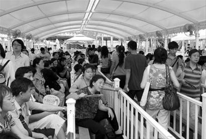 這兩天,記者在世博園區(qū)看到,一些熱門(mén)場(chǎng)館前排隊(duì)時(shí)間大大減少。 “大約排隊(duì)兩三個(gè)小時(shí)……”昨天中午,當(dāng)一群學(xué)生模樣的游客聽(tīng)到日本館(網(wǎng)上日本館)排隊(duì)處工作人員這句話(huà),欣喜萬(wàn)分, “原本聽(tīng)說(shuō)起碼要排5個(gè)小時(shí),想不到今天只要一半時(shí)間,賺了。”