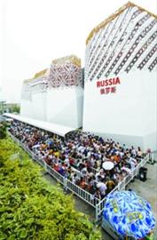 白俄羅斯館的外墻,通體是一幅色彩艷麗的巨型兒童畫。進入該館仿佛進入了“畫中畫”,館內四壁被色彩斑斕的兒童畫覆蓋,描繪的是白俄羅斯首都明斯克街頭的景觀。游客們“走”在兒童畫中,可以感受到白俄羅斯的浪漫氣息和美妙風光。