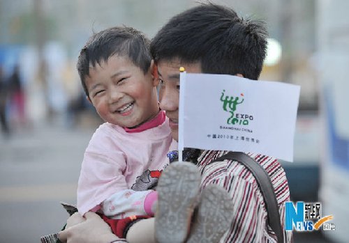 5月14日,一位游客在上海世博園內為孩子遮雨。當日,上海市的降雨天氣并沒有影響游客游覽的興致,雨中洋溢著的濃濃溫情讓人感動。(新華社記者 徐家軍/攝)