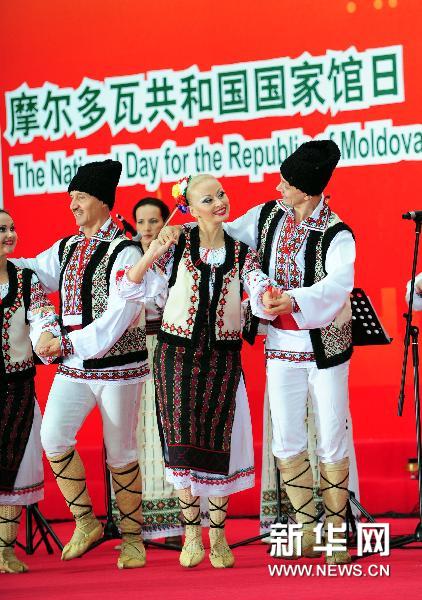 9月12日,世博會迎來摩爾多瓦國家館日。 來自摩爾多瓦的演員在國家館日活動上表演民族舞蹈。新華社記者 李百順 攝