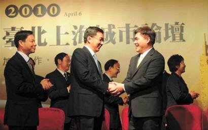 這次飛躍海峽兩岸近700公里的訪問(wèn),源于2年前的“上海之約”。2008年6月,臺(tái)北市市長(zhǎng)郝龍斌率團(tuán)到上海,并積極邀請(qǐng)上海市市長(zhǎng)韓正赴臺(tái)訪問(wèn)。在2010年世博會(huì)開(kāi)幕前夕,兩岸期盼已久的上海市政府訪問(wèn)團(tuán)終于成行,抵臺(tái)訪問(wèn)。