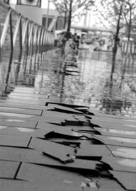 難道這兩天世博園內(nèi)游客數(shù)量太多,木質(zhì)廊橋已不堪重負?還是前一陣上海的陽光太毒辣,把地板都“曬傷”了。望著“七翹八裂”的廊橋,很多游客臉上都寫滿了疑問,有些人還猜測,是不是廊橋用了質(zhì)量不過關的板材,所以僅用了兩個多月地板就已經(jīng)“傷痕累累”。