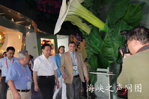 2010年世博會俄羅斯區總代表弗拉基米爾·斯特拉什科為他講述了俄羅斯館的設計理念及其在世博會的運作情況,并且為貴賓們介紹了即將到來的9月28日俄羅斯館國家館日的準備情況。