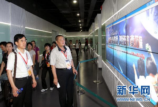 9月18日,劉胡蘭烈士的弟弟劉繼烈(右一)等烈士家屬代表在國家電網館參觀。當日,由民政部優撫安置局、上海市民政局和上海市擁軍優屬基金會聯合主辦的全國百名著名烈士家屬代表看世博活動在世博園區啟動,共有來自全國25個省市自治區的百名著名烈士家屬代表參加。 新華社記者 凡軍 攝