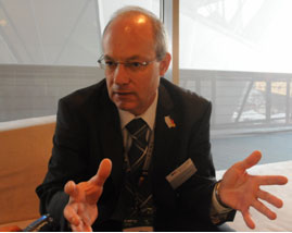 上海世博德國館以獨特的展館造型、深邃的展示內涵,傳達追求城市平衡的理念,獲得了A類展館主題演繹金獎。人民網聯合華東師范大學世博研究院與德國政府總代表迪特馬爾·施米茨進行了交流。