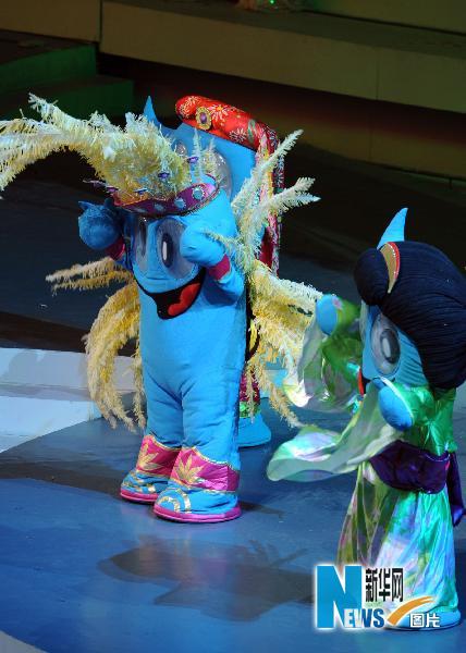 這是開(kāi)幕式前上海世博會(huì)吉祥物“海寶”亮相。