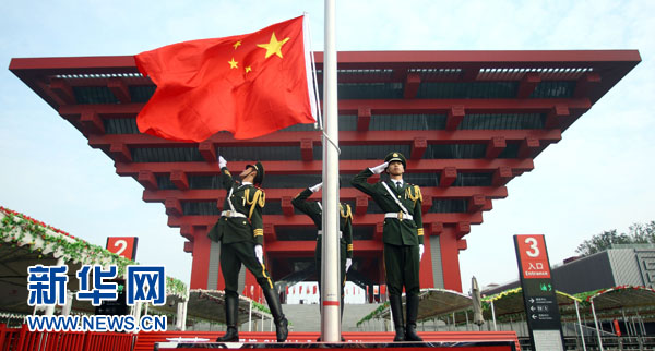 由246個國家和國際組織、逾7000萬人次參觀者共襄盛舉的上海世博會行將閉幕。人們在黃浦江畔依依不舍之時,難忘近6個月來,一張張燦爛的笑臉,一行行動情的眼淚。這是10月1日,上海世博會舉行中國國家館日升國旗儀式。 新華社記者費茂華攝