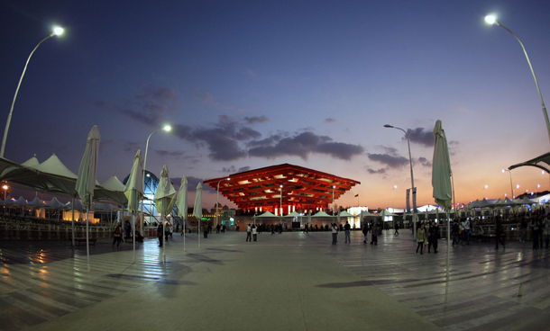 夜色中的中國館(10月30日攝)。新華社及張燕輝 攝