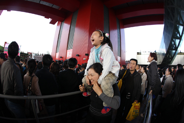 10月30日,觀眾在上海世博園排隊等待參觀。 新華社及 張燕輝 攝