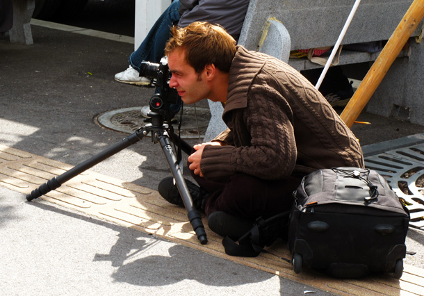 10月30日,一名外國游客在上海世博園內用膠片相機拍照。新華社記者 李睿 攝