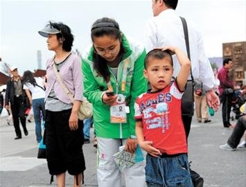 祁凌藝邊安撫小梓峻邊將他領(lǐng)到了距離最近的問(wèn)訊處,當(dāng)?shù)弥](méi)有找尋兒子的母親來(lái)過(guò)之后,就將孩子領(lǐng)到了世博園區(qū)的廣播尋人登記處。登記處的工作人員問(wèn)小梓峻,是否記得媽媽的手機(jī)號(hào)碼,卻只得到了一個(gè)6位數(shù)的固定電話號(hào)碼——孩子還小,分不清也講不清那么多的細(xì)節(jié)。