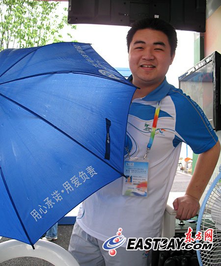 “需要注意的是,這些藍(lán)色的愛(ài)心傘只能在園區(qū)外使用,并且用后必須歸還,人們可以選擇就近的志愿者崗?fù)み傘,借傘時(shí)需要登記姓名、手機(jī)號(hào)碼并向志愿者發(fā)一則短信以供確認(rèn)。”汪愛(ài)華表示,目前為止幾乎所有外借的雨傘都被保存完好地歸還了,“人們的素質(zhì)的確提高不少”。