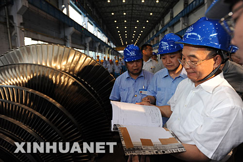 9月1日,溫家寶在德陽市漢旺鎮東方汽輪機廠視察生產恢復情況。新華社記者 黃敬文攝