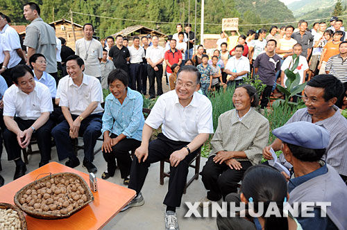 8月31日,溫家寶在青川縣棗樹村視察農民永久性住房建設情況。新華社記者 黃敬文攝