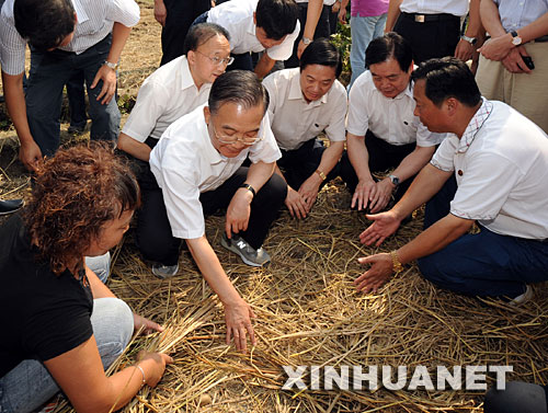 9月1日,溫家寶在德陽市孝泉鎮涌泉村視察農業生產情況,向搶種洋芋的村民詢問洋芋的種植方法、產量和收入情況。新華社記者 黃敬文攝