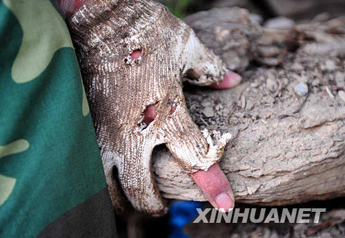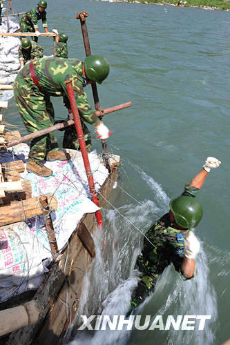一名解放軍戰(zhàn)士徒手加固便橋(6月2日攝)。