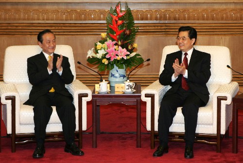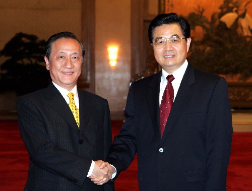 胡錦濤在人民大會堂會見新黨主席郁慕明