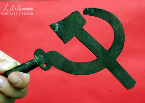 中華蘇維埃時(shí)期用鐵制作的中國(guó)共產(chǎn)黨黨徽。它不怕戰(zhàn)火,隨身攜帶,便于戰(zhàn)時(shí)和惡劣環(huán)境中舉行入黨宣誓。