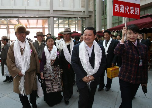新華網(wǎng)快訊:出席黨的十七大的西藏代表團(tuán)12日10時(shí)25分乘飛機(jī)抵達(dá)首都國際機(jī)場,成為第一個(gè)抵達(dá)北京的京外代表團(tuán)。