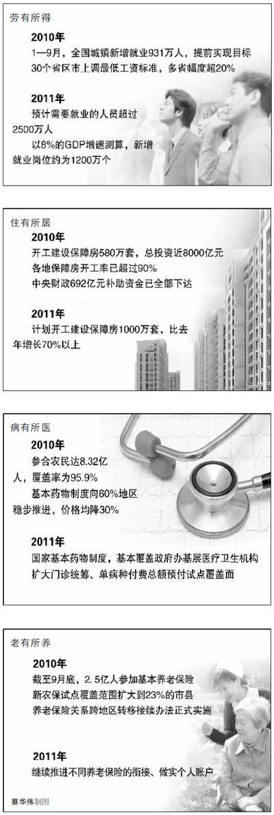 在改善民生上,要扎扎實實辦幾件實事——剛剛閉幕的中央經濟工作會議傳遞出了強烈的保障和改善民生的信號。2011年,“十二五”規劃開局之年,就業、住房、養老、醫療等民生領域將有什么具體舉措?