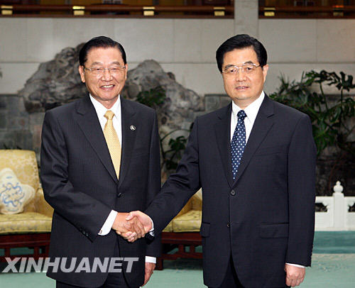 6月13日,中共中央總書記胡錦濤在北京釣魚臺國賓館會見臺灣海基會董事長江丙坤一行。 新華社記者劉衛(wèi)兵攝