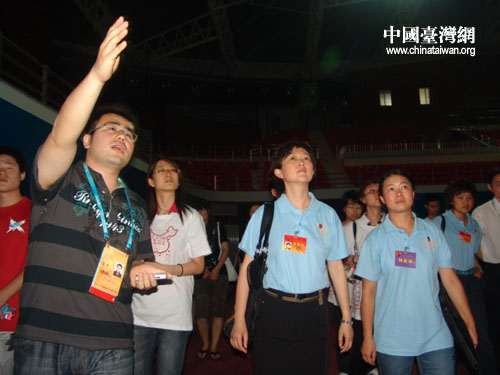 座談會后,幾位代表在北京理工大學奧運場館內部參觀。(攝影:鐘寶華) |