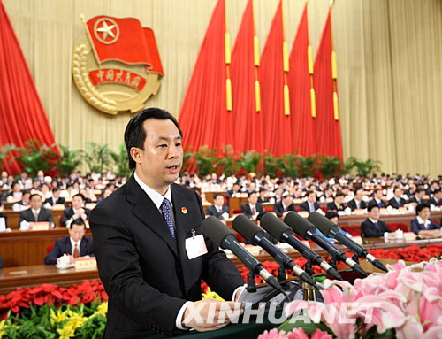 6月10日,中國共產主義青年團第十六次全國代表大會在北京人民大會堂開幕。這是大會主席團常務主席陸昊代表共青團第十五屆中央委員會作題為《高舉中國特色社會主義偉大旗幟團結帶領廣大青年為奪取全面建設小康社會新勝利而奮斗》的報告。新華社記者 龐興雷 攝