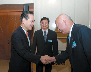 2005年7月8日,臺灣布袋港發展促進會大陸訪問團在北京拜會中國和平統一促進會,受到全國人大常委會副委員長、中國和平統一促進會副會長韓啟德的親切會見。