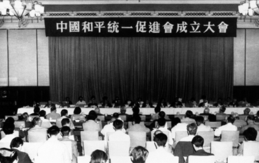 1988年9月22日,由社會各界人士組成的促進中國和平統一的民間團體“中國和平統一促進會”在北京宣告成立,參加發起的二十三家單位為個民主黨派和有關人民團體。 大會通過了《中國和平統一促進會章程》,選舉了領導成員,通過并發表了《中國和平統一促進會宣言》。 時任中共中央書記處書記、全國政協副主席、中央統戰部部長閻明復出席成立大會并講話。