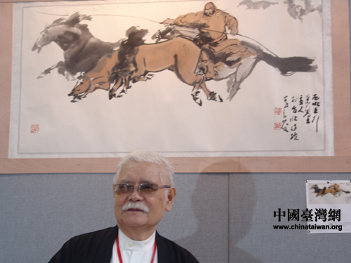 臺灣著名繪畫大師、83歲的李奇茂老人與他的參展作品“牧牛圖”