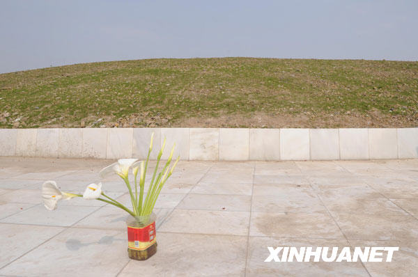 5月3日,有人在漢旺鎮5·12汶川大地震遇難者陵墓前獻上鮮花。